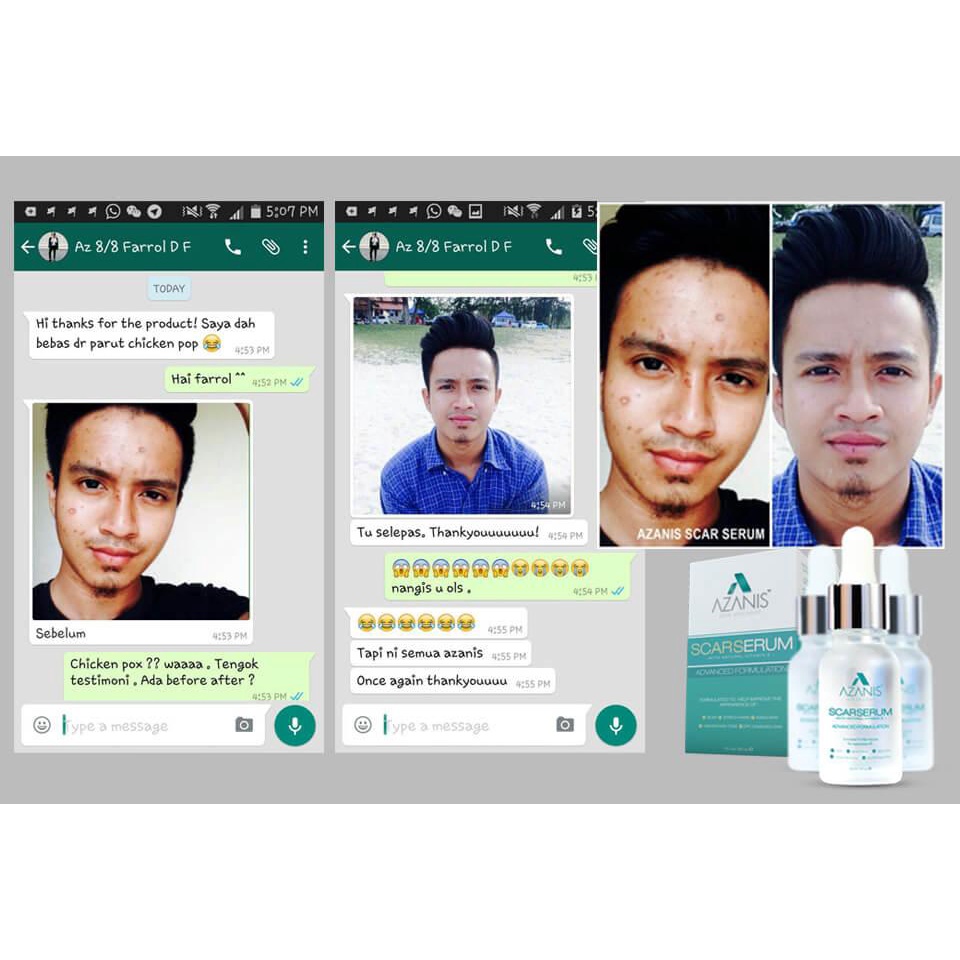 AZANIS SCAR SERUM DAH BERUBAH WAJAH LAH. Feedback azanis scar serum 99 pengguna pasti merasai beza ketara hanya dalam 1 bulan penggunaan. Pada parut baru Azanis Scar Serum harus disapu hanya apabila luka telah sembuh dan tidak boleh digunakan pada.